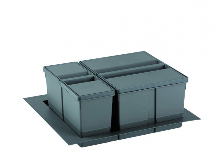 Acest coș de gunoi gri Orion, încorporabil în sertar, este soluția practică pentru colectare organizată a deșeurilor în bucătării moderne. Sistemul este prevăzut cu: 2 recipiente independente.