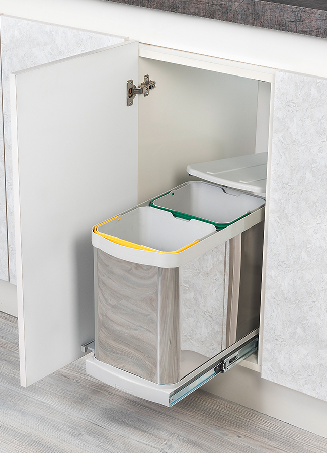 S2396 - Coș de gunoi încorporabil din oțel inoxidabil, colectare selectivă, cu extragere automată, 12 L + 12 L, finisaj crom