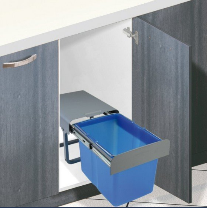🛠️ Montaj pe ușă (manual): sistemul se fixează în interiorul corpului, cu prindere pe ușa mobilierului, iar recipientul se extrag manual la deschiderea ușii.