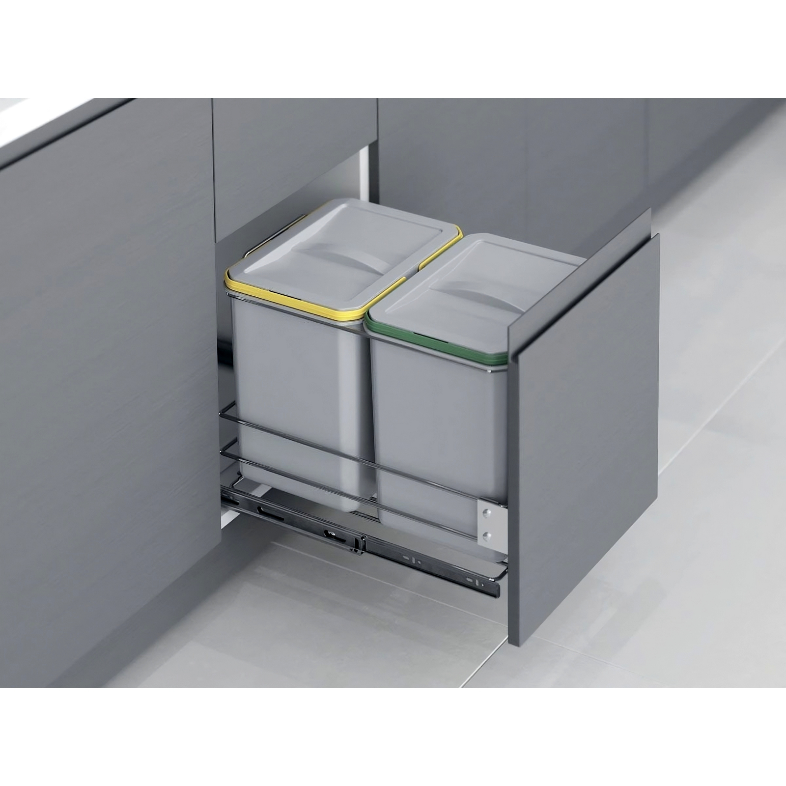 S-2582-G - Coș de gunoi încorporabil, glisant, cu montaj pe ușă, colectare selectivă, 2×6 L, gri, pentru corp de 400 mm