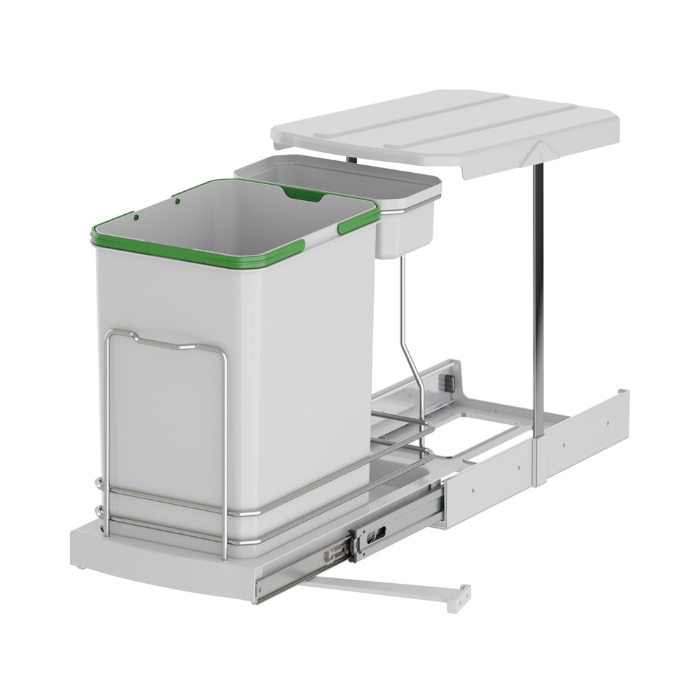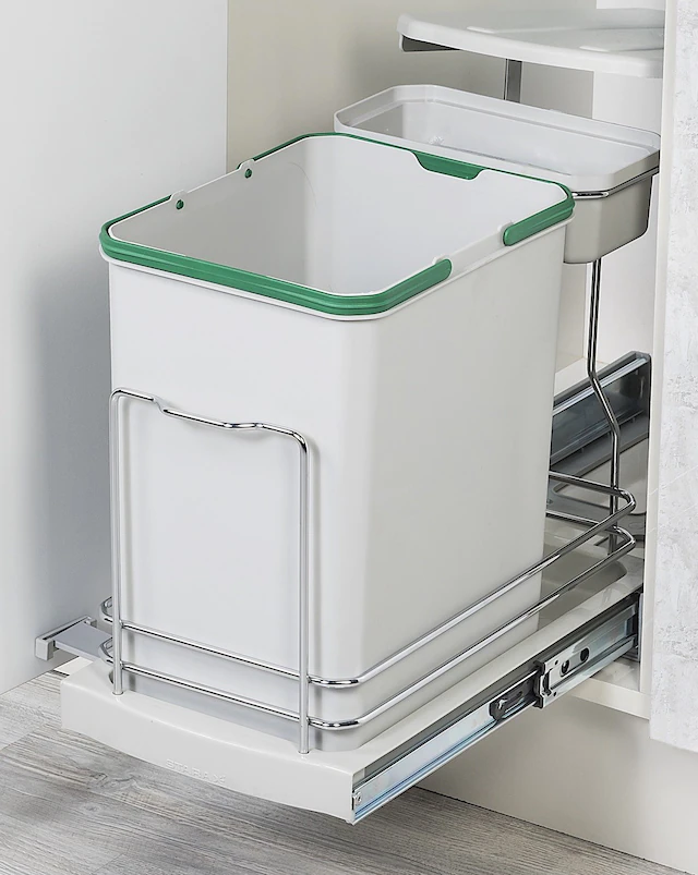 S2391 este un coș de gunoi încorporabil cu extragere automată, conceput pentru colectare selectivă eficientă în bucătării moderne. Sistemul este format din: 1 recipient principal de 16 litri și 1 recipient secundar de 1 litru. Capacitate totală: 17 litr