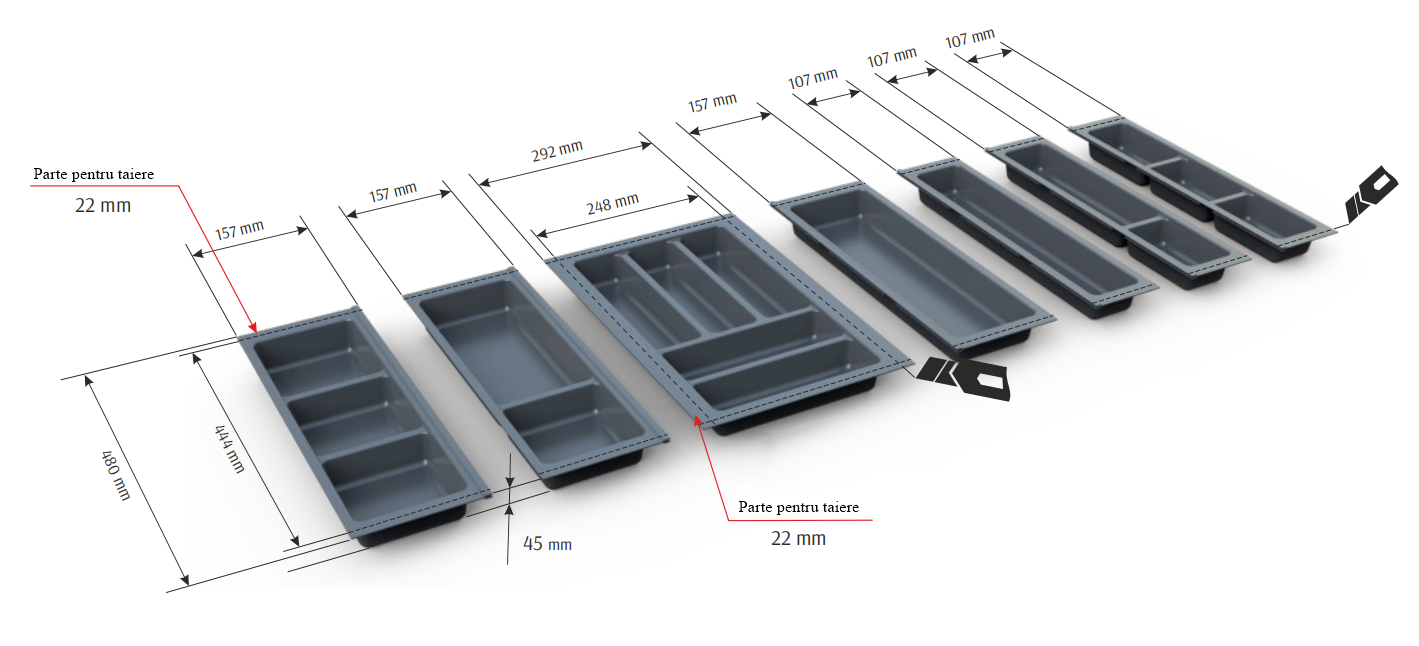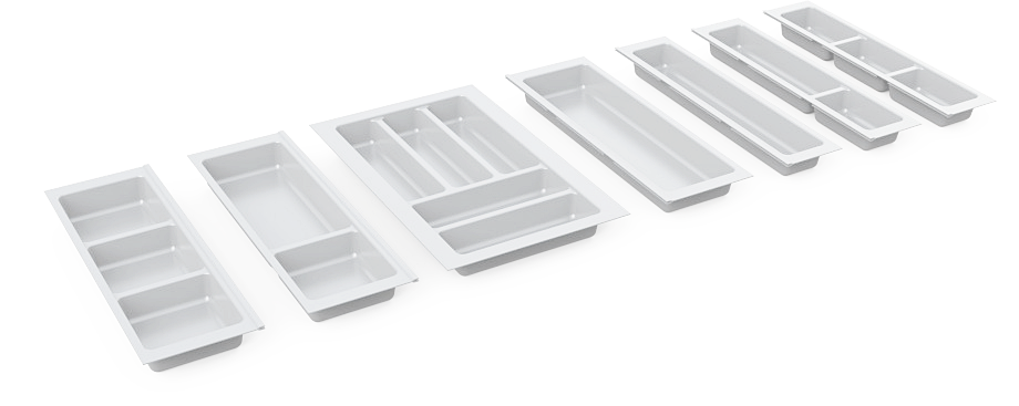 Recomandat pentru sertare de bucătărie, în mobilier din PAL, MDF sau lemn, acolo unde se dorește o organizare modulară, extensibilă și adaptabilă la spațiul disponibil.