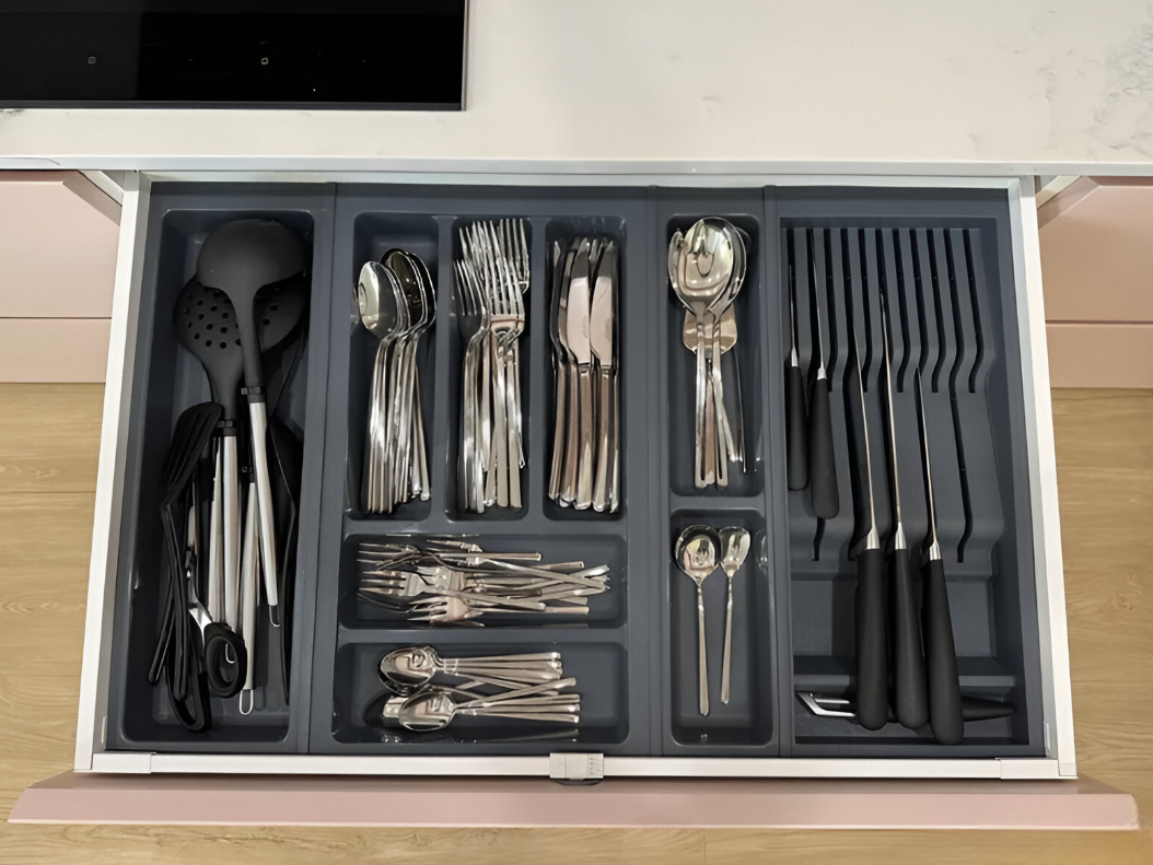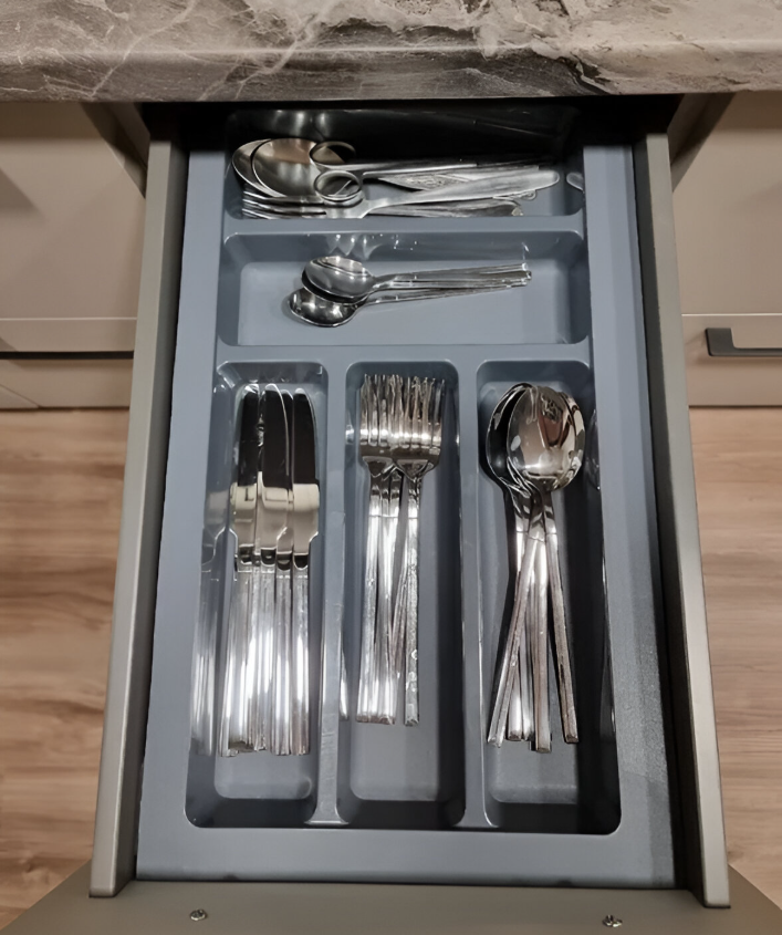 Recomandat pentru sertare de bucătărie, în mobilier din PAL, MDF sau lemn, acolo unde se dorește o organizare modulară, extensibilă și adaptabilă la diverse configurații.