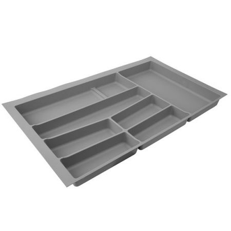 Suportul pentru organizarea tacâmurilor, în finisaj gri deschis, este conceput pentru sertare de bucătărie late, fiind compatibil cu corpuri cu lățime exterioară de 900 mm. Oferă o soluție practică și eficientă pentru organizarea ordonată a tacâmurilor și a accesoriilor de bucătărie, în sertare cu volum generos.