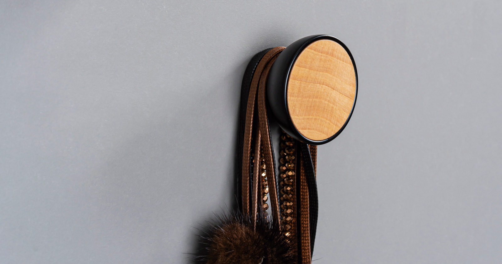Agățătoarea de cuier Bol impresionează printr-un concept decorativ distinct: o tulpină subtilă din zamak negru mat fixată pe perete, din care „înflorește” un volum rotund din lemn sapelli natur. Această combinație dintre metal și lemn exotic creează un contrast elegant, potrivit pentru interioare cu personalitate.