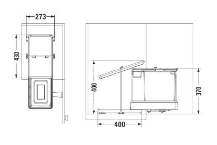 Acest cos de gunoi este potrivit pentru corp de mobilier cu o inaltime interioara de minim 460 mm, cu latimea interioara de minim 310 mm si cu adancimea interioara a corpului de minim 470 mm.