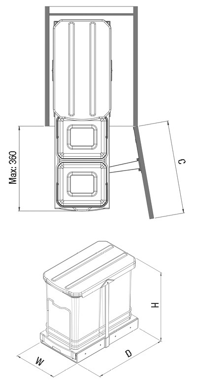 Acest cos de gunoi este potrivit pentru corp de mobilier cu o inaltime interioara de minim 430 mm, cu latimea interioara de minim 290 mm si cu adancimea interioara a corpului de minim 480 mm.