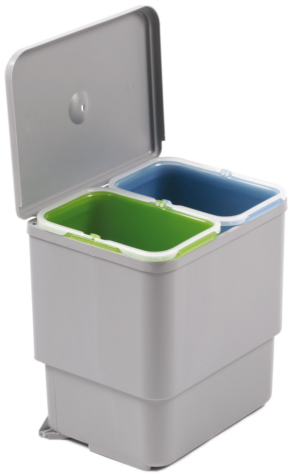 Cosul de gunoi are 2 compartimente interioare mobile de cate 8 litri fiecare, ceea ce il face usor de curatat. Este un cos rezistent confectionat din polipropilena cu fibra de sticla.