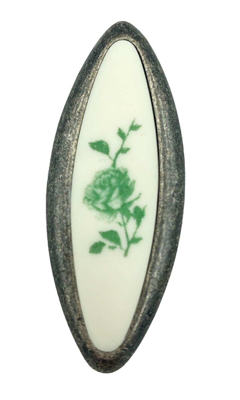 Butonul metalic pentru mobila cu aspect oxidat cu insertie rasina floare verde aduce o nota de eleganta si rafinament mobilierului pe care este montat. Calitatea materialului din care este realizat face ca manerul sa nu isi modifice aspectul odata cu trecerea timpului. Fiecare maner este ambalat individual in punga de plastic si contine suruburi de fixare.