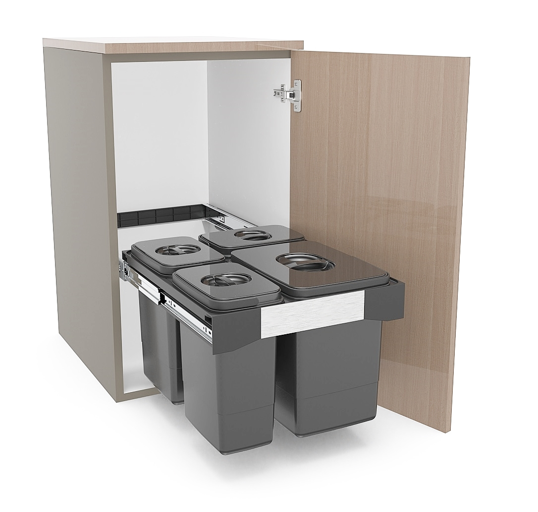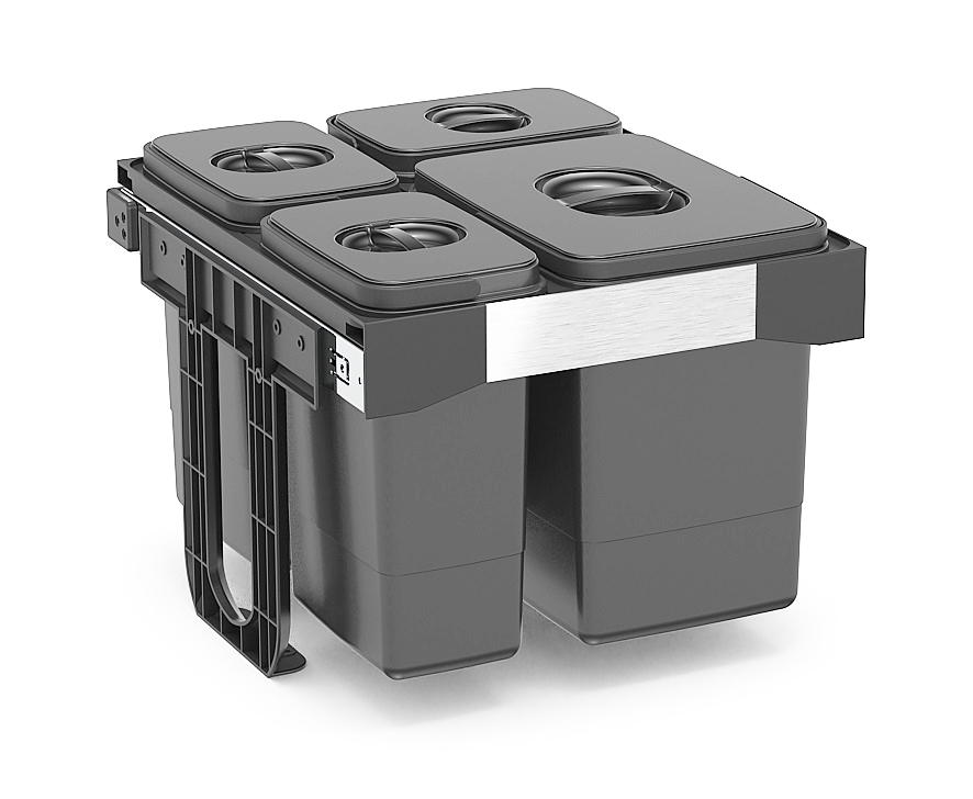 Cosul de gunoi incorporabil pentru colectare selectiva, Free Jazz 45 asigura maximizarea spatiului cu ajutorul compartimentelor sale: 1 x 20 litri si 3 x 7 litri.