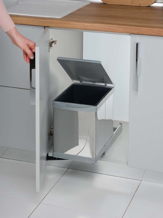 Extragerea automata se face prin glisare silentioasa odata cu deschidera usii, iar capacul se ridica singur la extragerea cosului. Astfel odata cu deschiderea usii aveti acces imediat la cosul de gunoi.