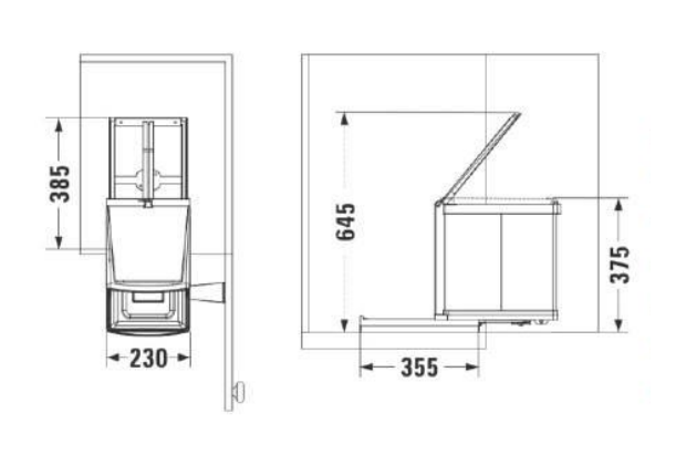 Acest cos de gunoi este potrivit pentru corp de mobilier cu o inaltime interioara de minim 410 mm, cu latimea interioara de minim 280 mm si cu adancimea interioara a corpului de minim 415 mm.