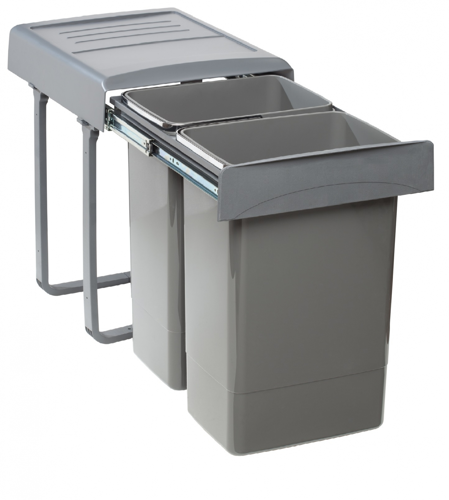 Cosul de gunoi pentru colectare selectiva cu 2 compartimente mobile este prevazut cu ghidaje din otel galvanizat care pot sustine o greutate de pana la 50 kg.