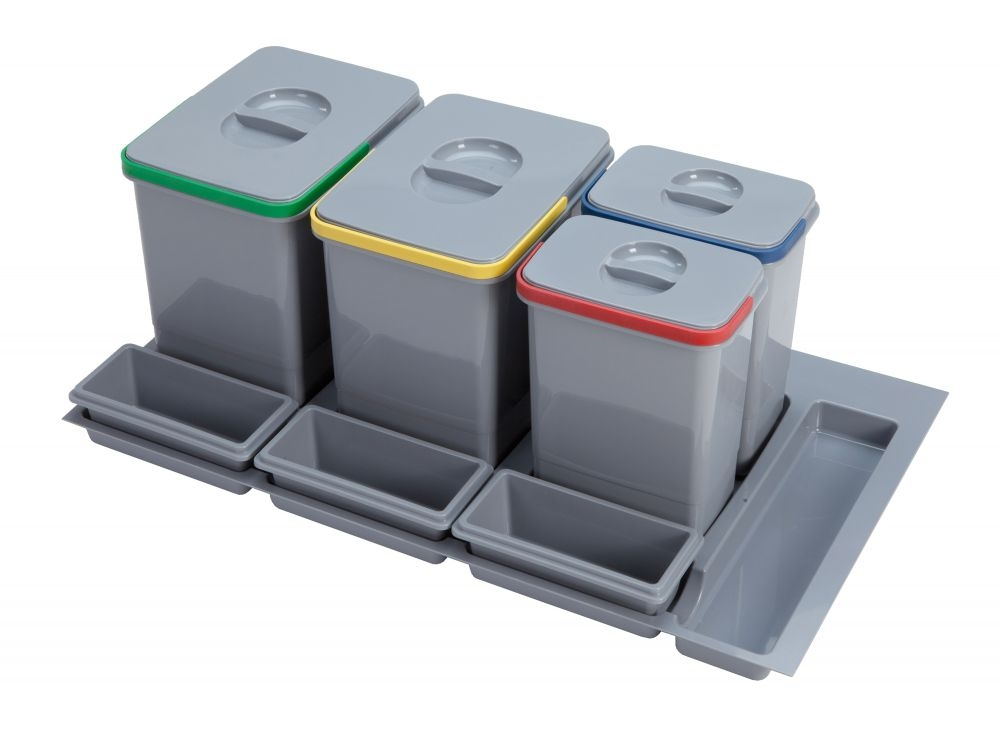 Sistemul de cosuri de gunoi pentru sertare este ideal pentru colectarea selectiva a deseurilor.Este compus din 2 recipiente a cate 15 litri, 2 recipiente a cate 7 litri si 3 tavite Este prevazut cu o tavita-suport pentru stabilitate si este foarte usor de curatat.