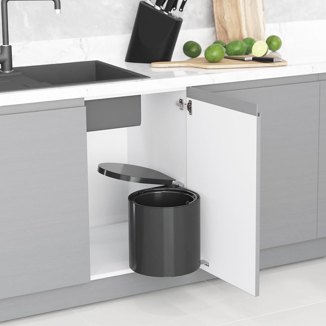 Coșul de gunoi încorporabil de 10 litri, în finisaj antracit mat, cu capac automat, este soluția perfectă pentru bucătării moderne care pun accent pe igienă, design și funcționalitate. Datorită dimensiunilor compacte — D: 280 mm, H: 300 mm — este ideal pentru corpurile de dimensiuni mici și medii, fără a ocupa inutil spațiul.