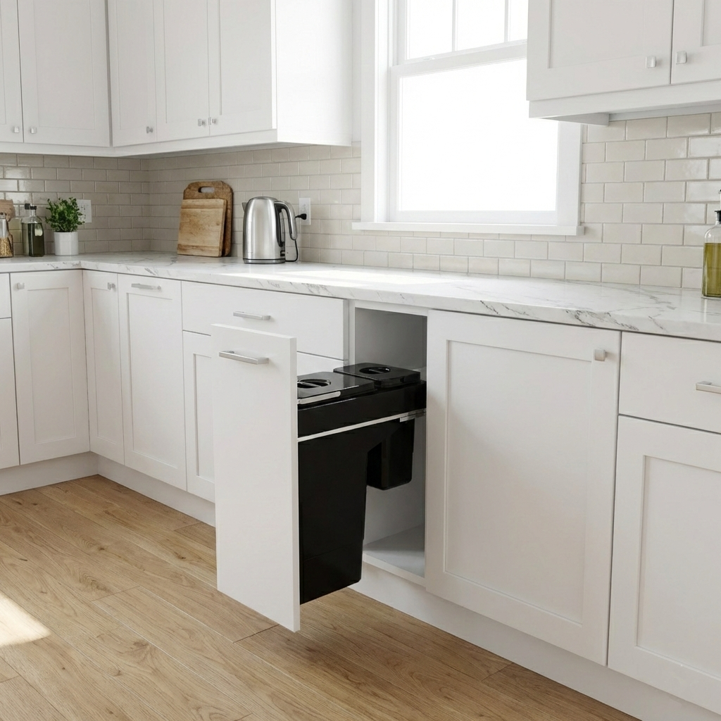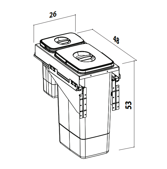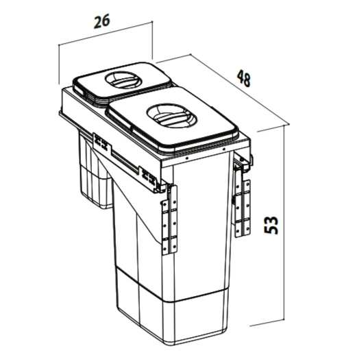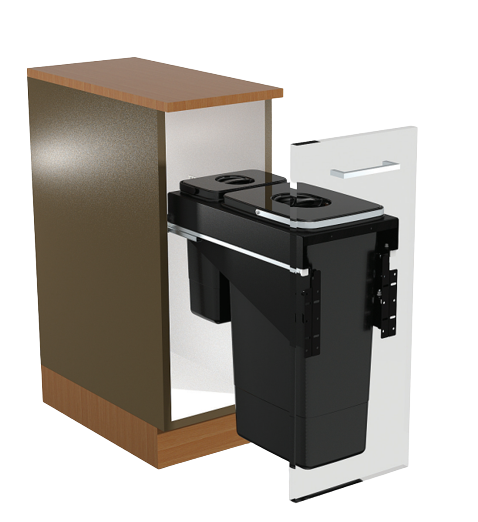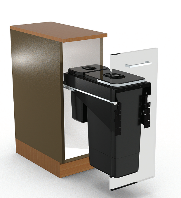 Coșul de gunoi încorporabil Front 30, cu două compartimente – 26 litri și 7 litri, este o soluție elegantă și extrem de practică pentru colectare selectivă eficientă în bucătăriile moderne. Capacitatea totală de 33 litri îl face ideal pentru separarea resturilor menajere de deșeurile ușoare, în spații unde organizarea compactă este esențială.