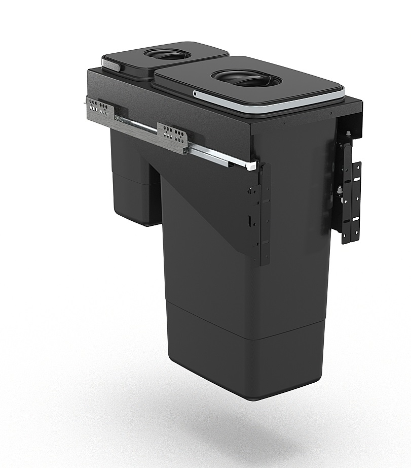 Configurația 26 L + 7 L este ideală pentru separarea deșeurilor voluminoase de cele mici (ambalaje, capsule, resturi ușoare), oferind un echilibru perfect între capacitate și economie de spațiu.