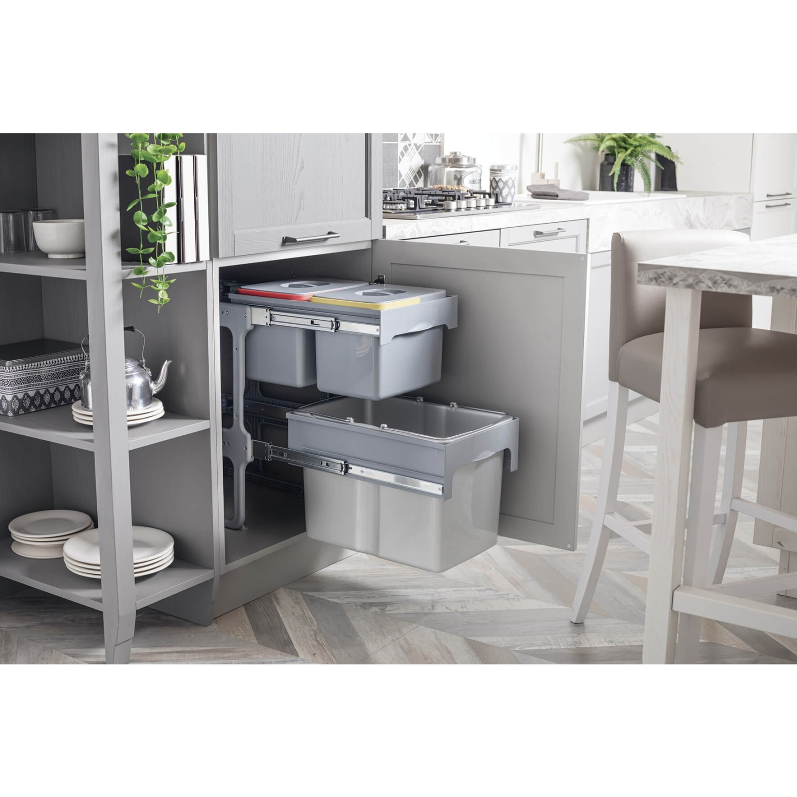 Tandem Short - Coș de gunoi încorporabil, colectare selectivă, cu 1 compartiment x 34 litri si 2 compartimente x 12 litri
