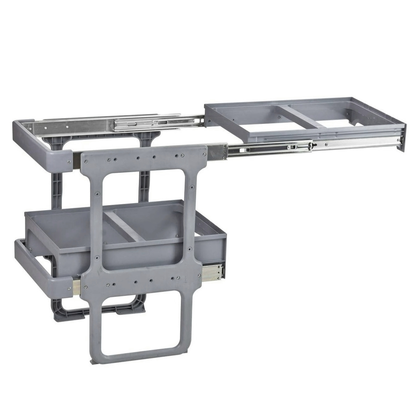Recipientele sunt din polipropilenă rezistentă, iar structura și glisierele sunt metalice, pentru stabilitate ridicată.