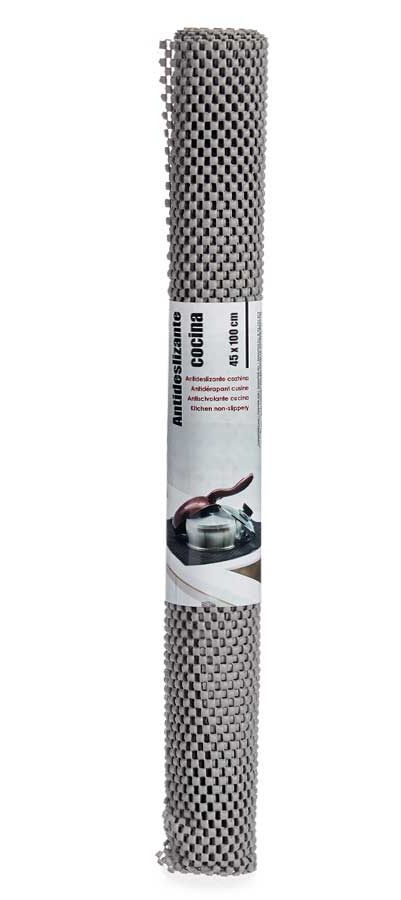 Folie antialunecare 45 × 100 cm, 350 gr, plastic gri, ideală pentru sertare și rafturi. Stabilizează obiectele și protejează suprafețele. Disponibilă pe vreaumanere.ro.