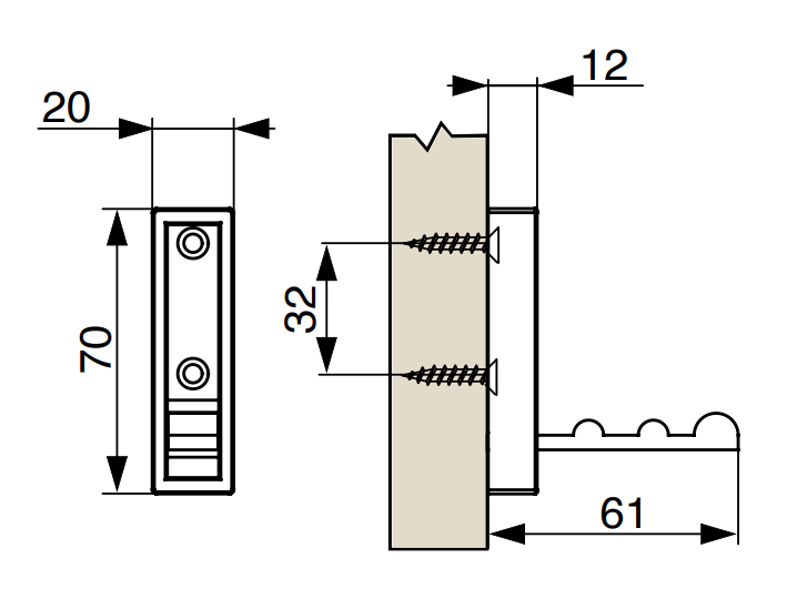 Maxdeco Riex XV44 - Agatatoare cuier, finisaj nichel periat, 70x20x12 mm