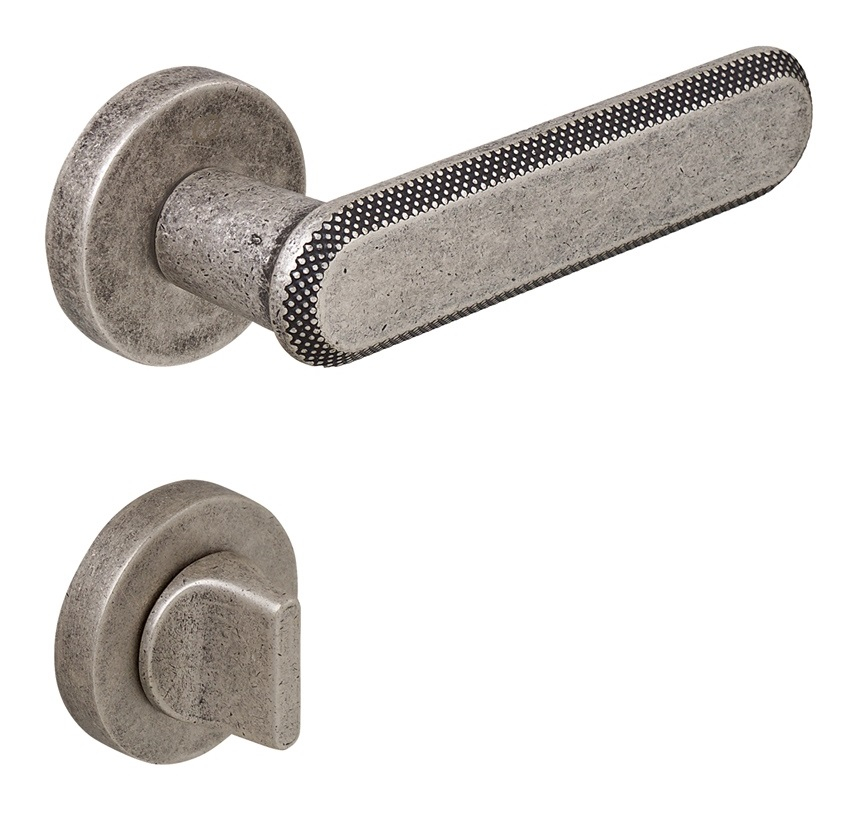 Cebi Nola - Set maner usa baie, cu rozeta rotunda, finisaj argint antichizat CB