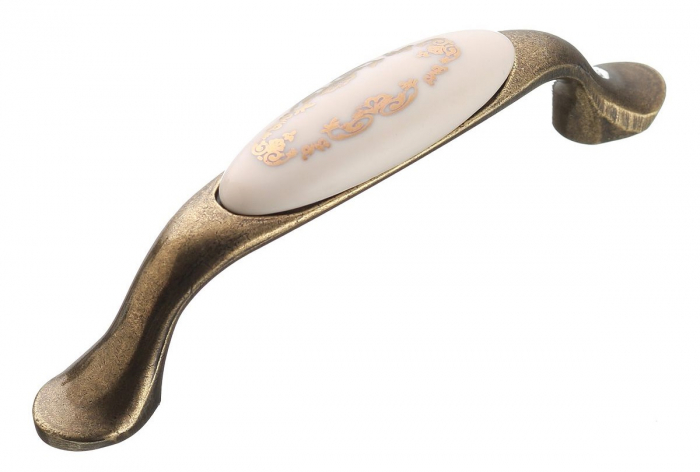 GTV Arch - Maner vintage cu insertie ceramica, finisaj auriu antichizat, L:125 mm