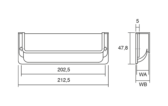 Dimensiuni: L:212.5 mm; l:47.8 mm; WA:18.6 mm; WB:21.3 mm