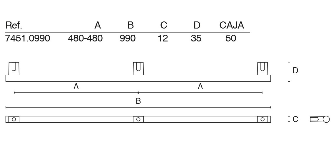 Navarro Azorin Veteo - Maner pentru mobila, finisaj nichel satin, L:990 mm