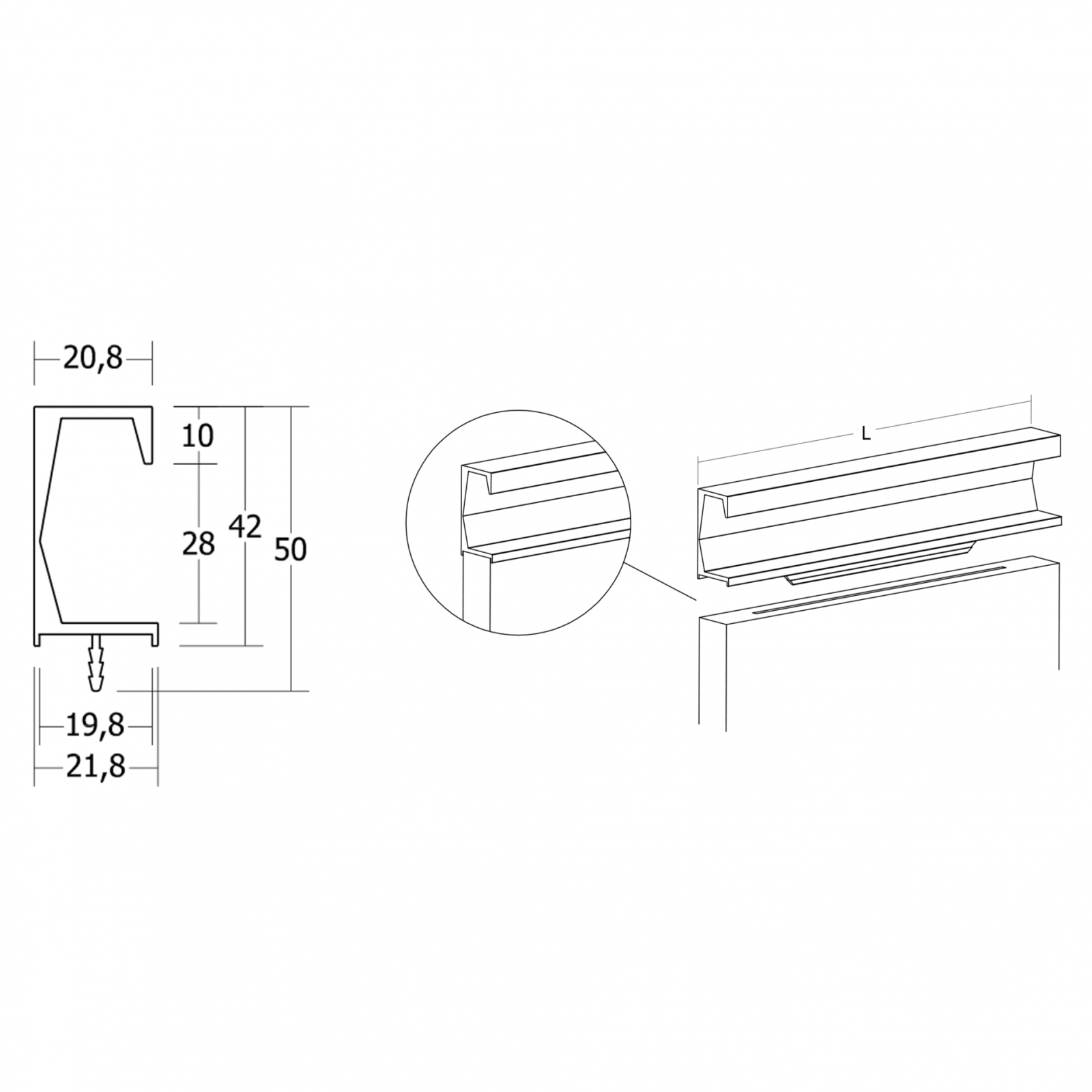 Viefe Six - Maner pentru mobila, finisaj alb mat texturat, L:147 mm