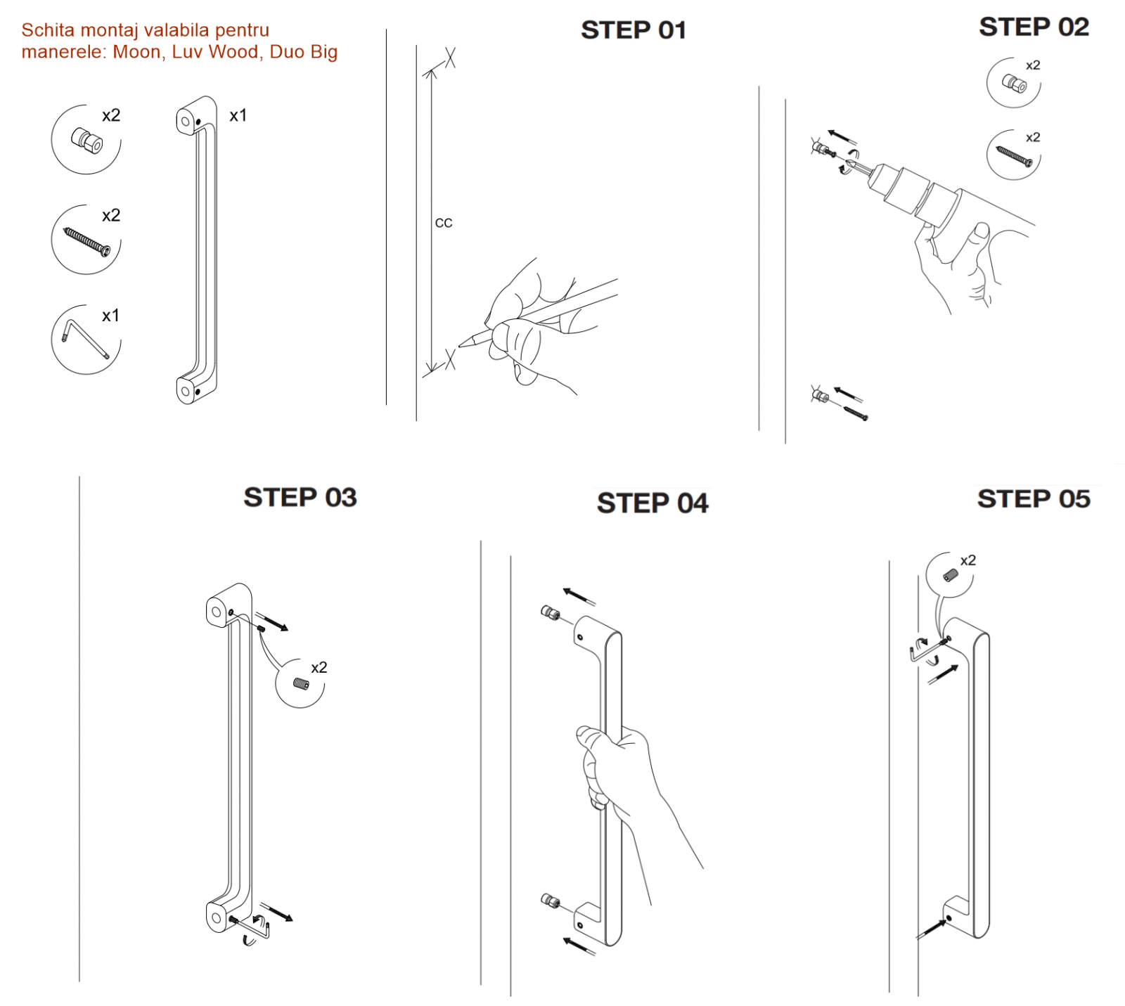 Distanta intre gauri: C:480 mm