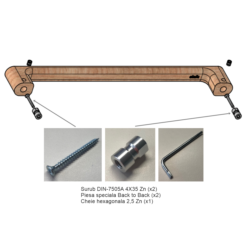 Viefe Luv Wood Big - Maner spatial single, finisaj natur, L:418,5 mm