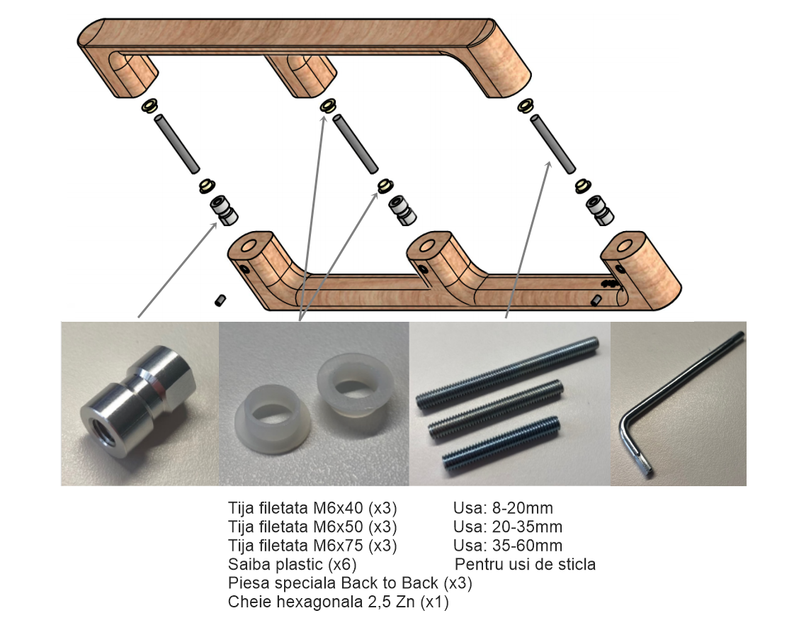 Viefe Luv Wood Big - Set manere spatiale double, finisaj stejar, L:1026,5 mm