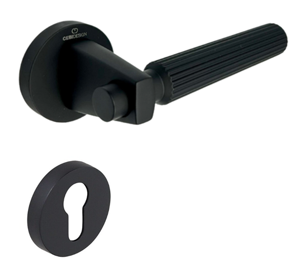 Cebi Hana Straight - Set maner usa cu cilindru, cu rozeta rotunda, finisaj negru mat CB