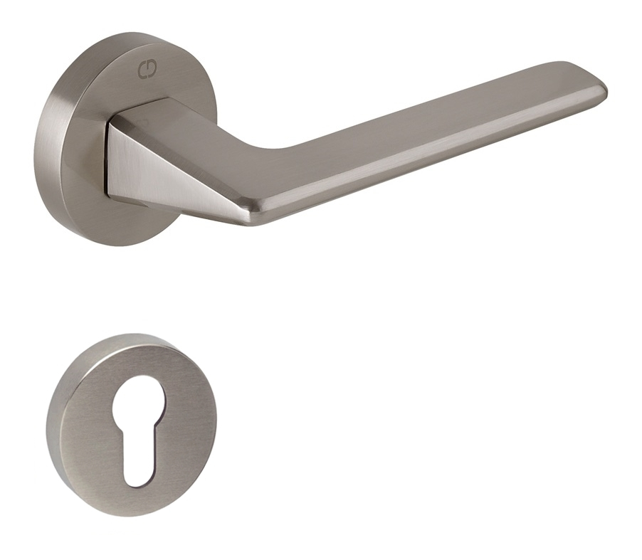Cebi Vera - Set maner usa cu cilindru, cu rozeta rotunda, finisaj nichel satin CB