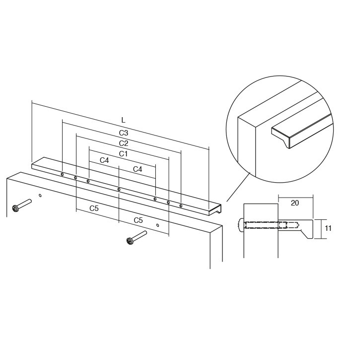Dimensiuni: L:100 mm; l:11 mm; H:20 mm