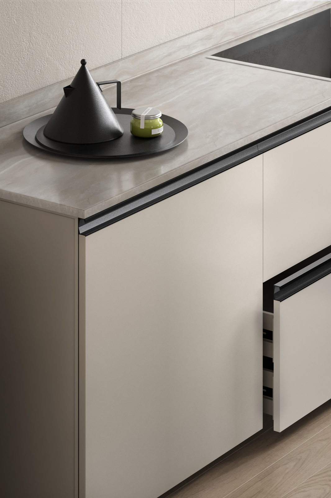Viefe Six - Maner pentru mobila, finisaj negru lava texturat, L:497 mm