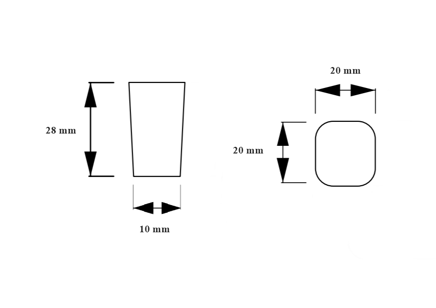 Dimensiuni: L:20 mm; l:20 mm; H:28 mm