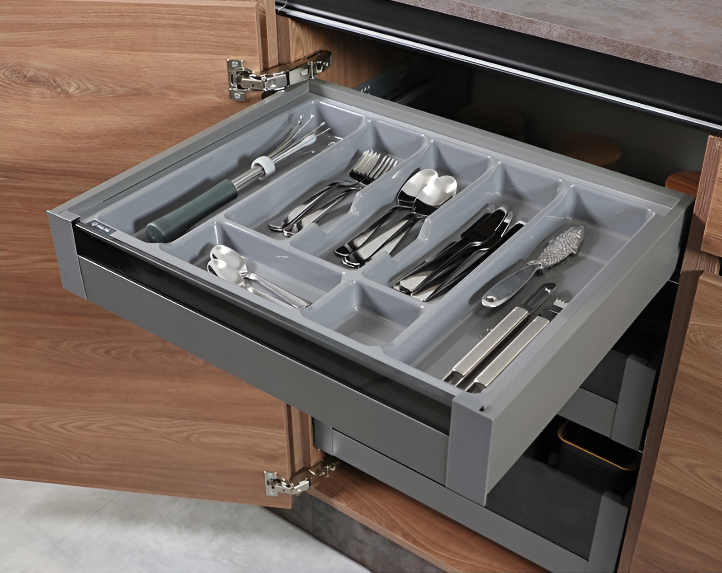 Este ideal pentru sertare de bucătărie aferente corpurilor de 700 mm, realizate din PAL, MDF sau lemn, în bucătării rezidențiale sau spații unde este necesară o organizare eficientă și bine structurată.