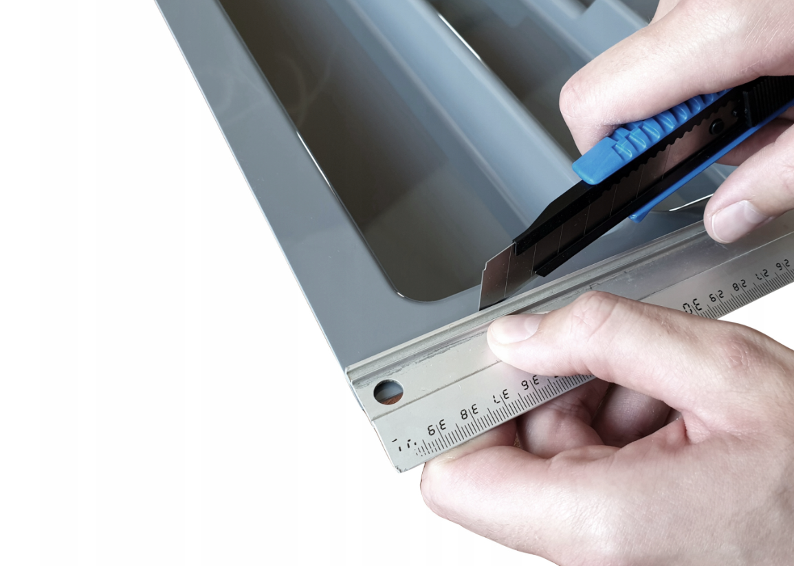 Suportul se poziționează direct în sertar. Marginile ajustabile pot fi decupate pentru a adapta suportul la dimensiunea interioară exactă a sertarului. Nu necesită montaj sau accesorii suplimentare.