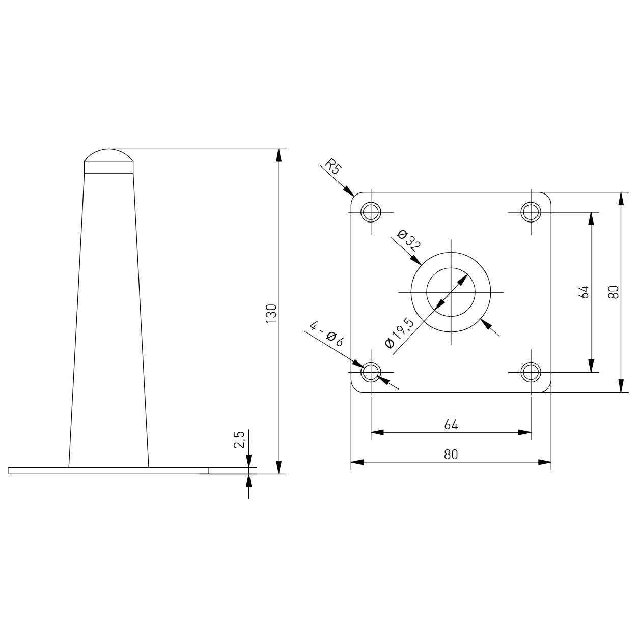 GTV Spire - Picior pentru mobilier, finisaj negru mat GT, H:130 mm