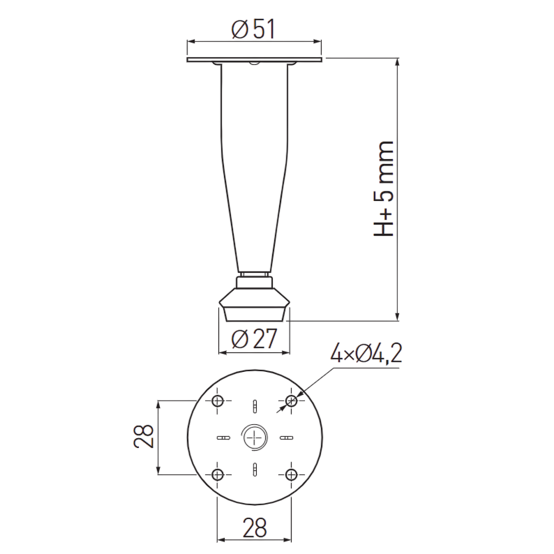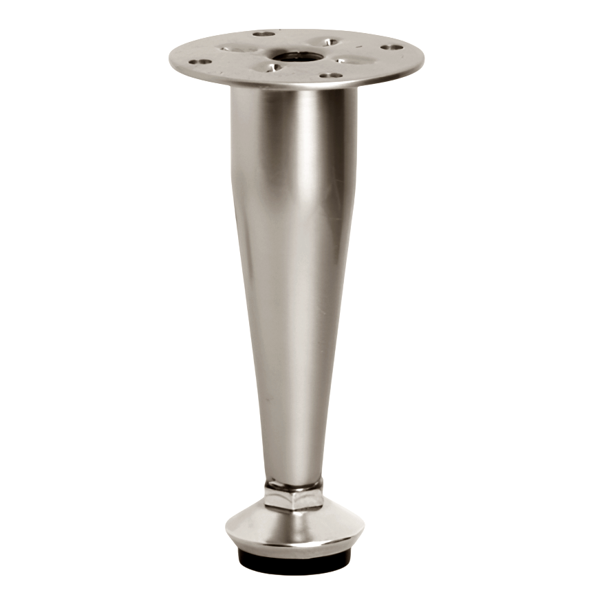 Piciorul pentru mobilier D-03, cu finisaj nichel satin GT și înălțime de 100 mm, este conceput pentru a oferi un aspect elegant și modern, alături de funcționalitate ridicată. Designul conic și finisajul satinat permit integrarea armonioasă în diverse stiluri de mobilier, de la modern la clasic.