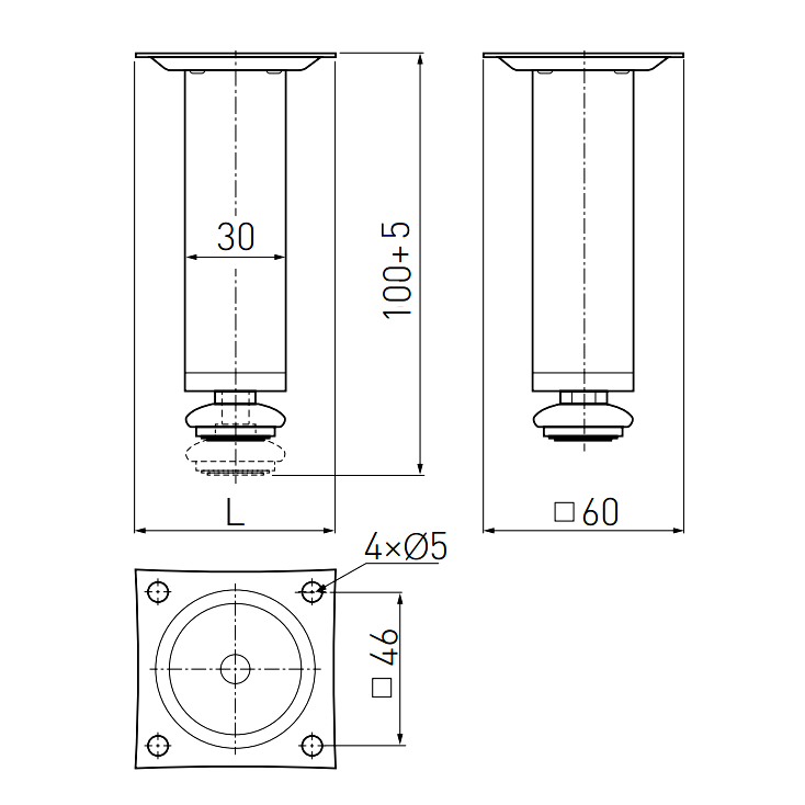 Piciorul reglabil pentru mobilier, cu finisaj crom lucios GT și înălțime de 100 mm, este un accesoriu esențial pentru asigurarea stabilității și funcționalității pieselor de mobilier. Datorită diametrului de 30 mm și posibilității de ajustare până la 105 mm, acest picior permite nivelarea precisă a mobilierului, chiar și pe suprafețe ușor denivelate.