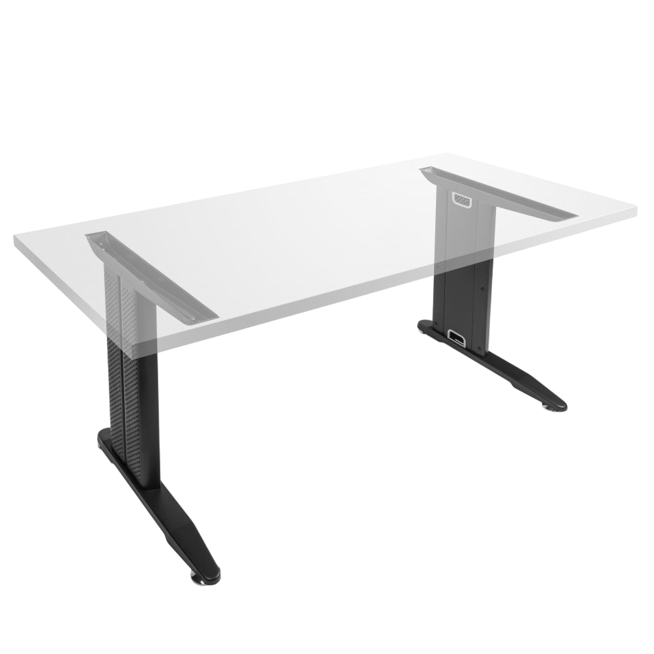 Picioarele sunt prevăzute cu mecanisme de reglare a înălțimii, permițând ajustarea fină cu până la 10 mm, ideală pentru compensarea denivelărilor pardoselii. Finisajul negru mat oferă un aspect modern, profesional și ușor de integrat în amenajări office contemporane.