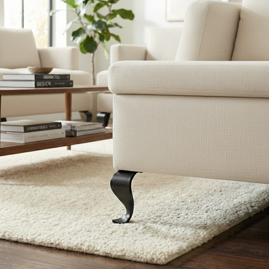 Piciorul pentru mobilier Sigma, cu înălțimea de 150 mm, se distinge printr-un design sculptural modern, caracterizat de o curbură elegantă în formă de S. Această formă fluidă adaugă dinamism vizual și contribuie la îndulcirea liniilor drepte ale pieselor de mobilier, oferind un aspect contemporan și echilibrat.