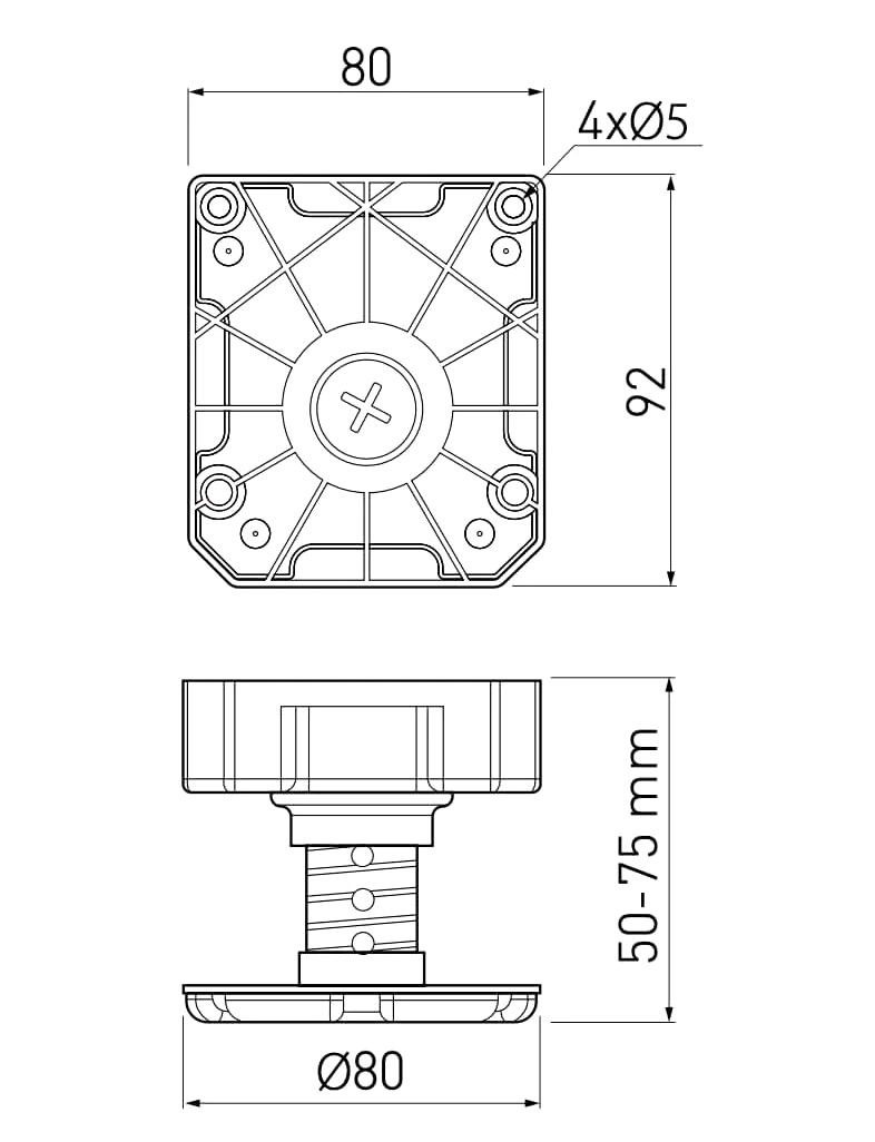 Piciorul ajustabil pentru mobilier greu, cu interval de reglaj 50–75 mm și capacitate portantă de până la 450 kg, este conceput pentru susținerea structurilor cu greutate mare, oferind stabilitate și siguranță în utilizare. Sistemul ranforsat îl face potrivit pentru aplicații solicitante.