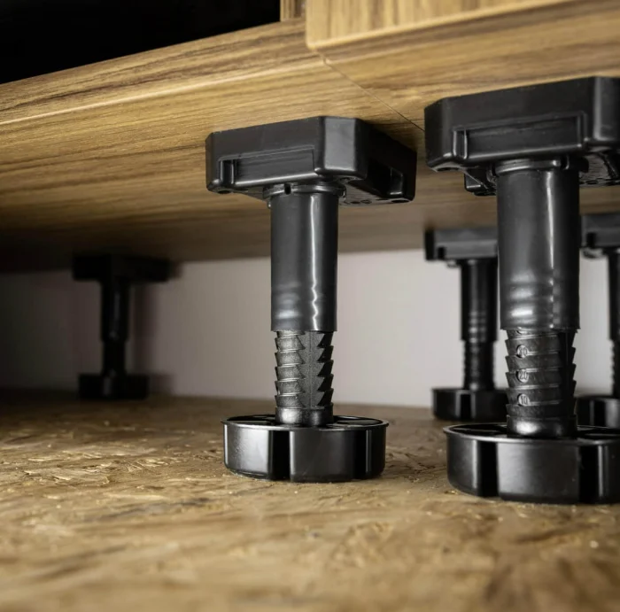 Se utilizează pentru mobilier greu, echipamente tehnice, corpuri bucătărie masive și alte structuri cu greutate ridicată, prin fixare mecanică la baza corpului și reglare pentru nivelare precisă.