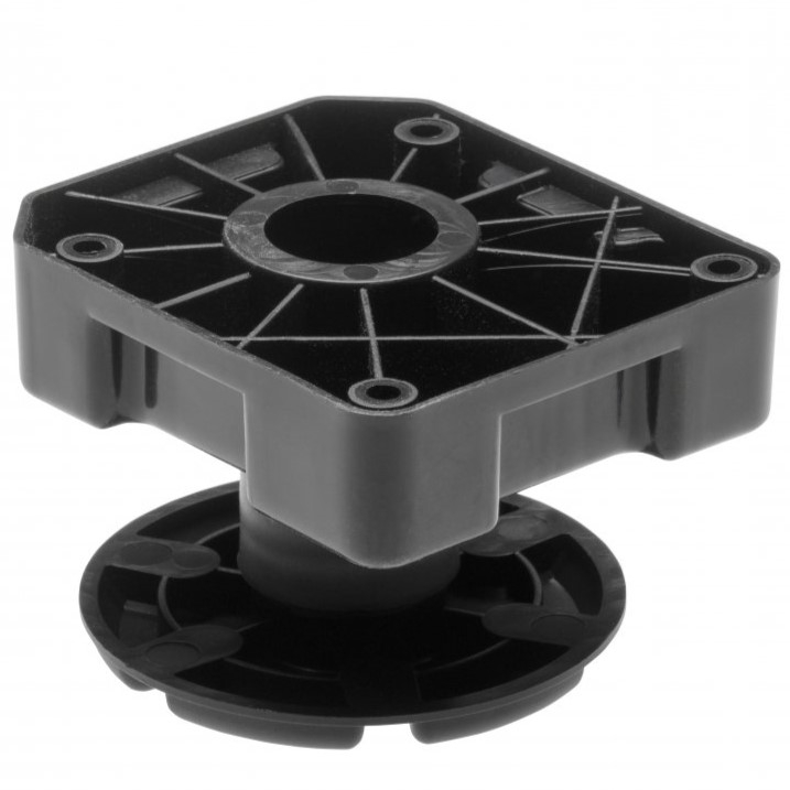 Piciorul ajustabil pentru mobilier greu, cu finisaj negru GT, este proiectat pentru susținerea sigură a corpurilor cu greutate mare, oferind stabilitate ridicată și nivelare precisă. Prin construcția sa, creează un spațiu de aer între mobilier și podea, util pentru ventilație și pentru protecția zonelor de contact, mai ales în aplicații precum corpuri inferioare de bucătărie sau mobilier tehnic.