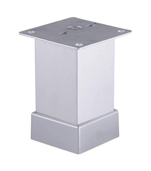 Realizat din profil pătrat de aluminiu, piciorul este prevăzut cu flanșă de prindere din oțel, care permite fixarea sigură pe baza corpului de mobilier prin 3 șuruburi. Sistemul de reglaj pe înălțime prin înfiletare facilitează nivelarea precisă a mobilierului pe suprafețe neuniforme.