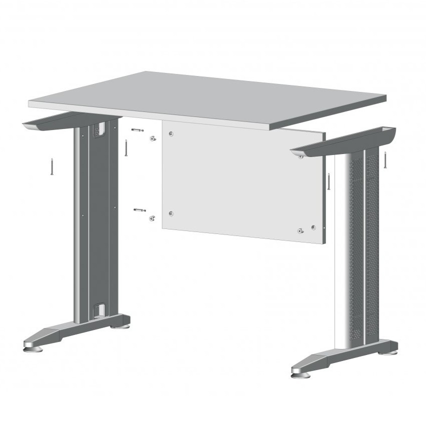 Setul de picioare pentru birou, cu finisaj argintiu și înălțime reglabilă între 725 și 735 mm, este proiectat pentru a susține blaturi de lucru cu stabilitate ridicată și durabilitate în utilizare zilnică. Construcția din oțel asigură rezistență excelentă, fiind potrivită pentru birouri profesionale, spații corporate sau home office.